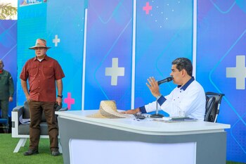 El presidente de Venezuela, Nicolás Maduro, ha acusado este lunes al opositor Leopoldo López y al expresidente de Colombia Álvaro Uribe de planear ataques "terroristas" en el país latinoamericano de cara a las elecciones del 28 de julio. "Vi a un terrorista, un asesino, un criminal, prófugo de la justicia venezolana, Leopoldo López, en Colombia, reunido con otro terrorista criminal antibolivariano y antivenezolano, Álvaro Uribe. Tengo información de planes que preparan para atacar los estados vecinos (Zulia, Táchira, etc) con terroristas, con paramilitares", ha declarado durante su progrma 'Con Maduro +'. El mandatario venezolano ha dado la "máxima alerta a toda la Fuerza Armada Nacional Bolivariana", a los organismos de Inteligencia y contrainteligencia, al considerar que "cuando esos dos terroristas perversos se reúnen es para conspirar". "Tenemos que defender la paz en Venezuela, la estabilidad, la seguridad. No pueden venir estos terroristas de los apellidos a tratar de sabotear a Venezuela para tratar de perturbar nuestra recuperación económica y la fiesta electoral de la democracia que vamos a tener el 28 de julio", ha manifestado. Maduro, que llegó al poder en 2013, será el candidato oficialista para las elecciones presidenciales, donde buscará un tercer mandato. La oposición eligió en primarias a María Corina Machado como aspirante unitaria, pero se desconoce si finalmente participará de los comicios debido a una inhabilitación de 15 años confirmada por el Supremo de Venezuela. La candidata está acusada de haber "sido participe de la trama de corrupción orquestada por el usurpador Juan Guaidó, que propició el bloqueo criminal a la República Bolivariana de Venezuela, así como también el despojo descarado de las empresas y riquezas del pueblo venezolano en el extranjero, con la complicidad de gobiernos corruptos".