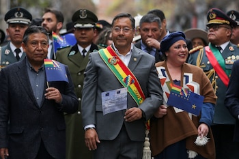 El presidente de Bolivia, Luis Arce, lideró el desfile junto al vicepresidente David Choquehuanca; la canciller, Celinda Sosa; el ministro de Defensa, Edmundo Novillo; de la Presidencia, María Nela Prada; de Obras Públicas, Édgar Montaño, y el alcalde de La Paz, Iván Arias, entre otros.