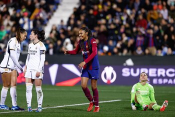 El FC Barcelona buscará este domingo dejar visto para sentencia su quinto título consecutivo de la Liga F con una victoria en su visita al Real Madrid en el Estadio Alfredo Di Stéfano, mientras que el Levante UD, el Madrid CFF y el Atlético de Madrid intentarán no fallar en sus respectivos duelos ante equipos de la parte baja en su pelea por la tercera plaza que da acceso a la previa de la Liga de Campeones. La vigesimoprimera jornada del campeonato doméstico tiene como principal punto de atención el duelo entre el primer y segundo clasificados en Madrid, donde podría acabar cualquier pequeño atisbo de emoción que todavía puede existir ya que el líder, poco dado a fallar a nivel liguero, domina con nueve puntos de ventaja y tiene en su mano su quinto título consecutivo. Este será el decimocuarto enfrentamiento entre ambos equipos y el blaugrana domina de momento con mucha claridad, con pleno de triunfos, y, sobre todo, tras haberse impuesto en los dos de esta temporada sin dar demasiado margen a la sorpresa y abriendo un debate sobre la distancia entre ambos. El conjunto que entrena Jonatan Giráldez goleó de forma clara en la primera vuelta liguera por 5-0, en un encuentro que dejó de estar igualado tras el 1-0 de Aitana Bonmatí en el minuto 17, y en el de la Supercopa de España del pasado mes de enero tampoco dio demasiadas opciones (4-0). Ahora, el Real Madrid, que parece haber dado con una mayor solidez defensiva, tratará en su estadio de competirle mejor al actual campeón y de que el partido sea más 'largo' que los anteriores, necesitando también un paso adelante en lo ofensivo después de que en los últimos cuatro partidos no le haya inquietado demasiado ni le haya marca. El equipo madridista, cuyo balance goleador es de 46 goles encajados y tan sólo seis anotados, con sólo una vez marcando más de uno (5-2 en la vuelta de cuartos de la Champions 21-22), está en una buena línea de regularidad de resultados, lo que le ha permitido escaparse en la pelea por la segunda plaza de la Liga F, su objetivo más prioritario, con nueve puntos de ventaja sobre el Levante UD. El FC Barcelona llegará al encuentro con algo más de desgaste tras un mes en el que ha tenido que alternar la competición doméstica con la Copa de la Reina y la Liga de Campeones, a la que retornó el pasado miércoles con una trabajada victoria ante el Brann por 1-2. Ante el equipo nórdico, al que recibirá el próximo jueves en el partido de vuelta, dispuso de su teórico mejor once y Giráldez podría apostar en el Alfredo Di Stéfano con alguna rotación y la posible entrada como titulares de Alexia Putellas, que no juega ante el Real Madrid desde las semifinales de la Copa de la Reina de 2022, y Fridolina Rölfo, ambas en busca de ritmo competitivo tras superar sus respectivas lesiones de rodilla. Pendiente de este partido estarán los perseguidores del conjunto madridista en la pelea por tener acceso a la próxima Liga de Campeones, encabezados por un Levante UD en mal momento. El conjunto 'granota' está a nueve puntos de la segunda plaza, pero su principal preocupación es defender la suya propia, que acechan el Madrid CFF y el Atlético de Madrid a uno y dos puntos, respectivamente. El Levante arrastra cuatro jornadas sin ganar y espera romper esta mala dinámica en la visita del penúltimo, un Betis que lleva once partidos ligueros sin ganar, mientras que el Madrid CFF intentará no fallar ante el colista Sporting Club Huelva en el Fernando Torres. El Atlético quiere seguir apretando por esa tercera posición en su desplazamiento a Ipurua para medirse a una SD Eibar, necesitada de puntos, pero que arañó cuatro puntos en sus tres últimos choques ante el Levante, el Madrid CFF y el Real Madrid, el único que le derrotó y por un ajustado 1-0. Además, el Sevilla, sexto, rendirá visita a un Costa Adeje que lleva nueve partidos ligueros sin ganar, y el Athletic Club buscará su cuarta quinta consecutiva en el derbi en el Reale Arena ante la Real Sociedad que está a cuatro puntos y que sólo ha sumado tres de los últimos doce puntos. El fin de semana liguero se completa con dos duelos directos por la permanencia entre el Valencia, duodécimo con 19 puntos, y el Granada, antepenúltimo con 15, y entre el Villarreal, décimo, y el Levante Las Planas, undécimo también con 19.