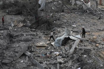Al menos 18 palestinos han muerto este domingo por la noche tras un bombardeo del Ejército de Israel contra una vivienda en la ciudad de Deir al Balá, en el centro de la Franja de Gaza, durante una jornada en la que el secretario general de la ONU, António Guterres, ha denunciado que "parece que están galopando por toda Gaza los cuatro jinetes" del Apocalipsis. Los equipos de emergencias ya han conseguido enviar a seis personas heridas al Hospital de los Mártires de Al Aqsa, según ha informado el diario palestino 'Filastín' en su canal de Telegram. Además, un ataque de la aviación israelí contra otra vivienda ha dejado otros tres muertos, esta vez en el campamento de refugiados de Yabna, en la ciudad de Rafá, situada en el sur del enclave. Israel lanzó una ofensiva contra la Franja de Gaza como respuesta a los ataques del Movimiento de Resistencia Islámica (Hamás) del 7 de octubre, que se saldaron con 1.200 muertos y 240 rehenes, de los que ya han sido liberados un centenar. Desde entonces, las autoridades palestinas han notificado la muerte de más de 32.200 personas en la Franja, a los que se suman 434 fallecidos en Cisjordania y en Jerusalén Este por las acciones de las fuerzas de seguridad y de colonos israelíes.