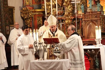 El arzobispo de Mérida-Badajoz, Celso Morga, ha presidido este martes, día 26, la misa crismal en la Catedral Metropolitana de la capital pacense, concelebrada por el arzobispo coadjutor, José Rodríguez Carballo, y monseñor Ángel Francisco Simón Piorno, obispo emérito de Chimbote (Perú), y con la presencia de la mayor parte de los sacerdotes de la archidiócesis, más de un centenar, que en el transcurso de la eucaristía han renovado sus promesas sacerdotales. En la misa crismal, que en la diócesis se celebra cada Martes Santo, también se han bendecido los santos óleos y se ha consagrado el Santo Crisma, utilizados en los sacramentos durante todo el año en las parroquias de la archidiócesis. En su homilía, Celso Morga ha animado a los sacerdotes a apoyarse "unos a otros y todos en el Señor que nos sostiene" y ha centrado su intervención en la fidelidad sacerdotal, ante lo que ha afirmado que ser fiel exige lucha interior, "enamorarse más del Señor". "Ser fiel es trabajar con humildad fiándonos de la ayuda del Señor, no de nuestras fuerzas, es tratar de imitar a Dios, que nos ama y no ha dejado de cumplir ninguna de las promesas que nos hizo", les ha trasladado. En la misma línea, ha definido la fidelidad sacerdotal como la respuesta a la fidelidad de Dios y los ha animado a pedir la gracia de perseverar. Finalmente, les ha agradecido su fidelidad y dedicación al tiempo que ha recordado a los sacerdotes enfermos, ancianos, y a los que han fallecido, según indica en nota de prensa el Arzobispado de Mérida-Badajoz. En la acción de gracias, el arzobispo coadjutor, José Rodríguez Carballo, ha recordado a los sacerdotes que "hoy es un día para agradecer y reavivar la gracia del sacerdocio", y ha pedido al Señor que envíe obreros a su mies y a los sacerdotes que transmitan a sus fieles la alegría de ser sacerdotes. A los fieles les ha dicho: "vosotros nos necesitáis, nosotros os necesitamos".