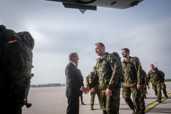 Las Fuerzas Armadas de Alemania han comenzado este lunes con el despliegue permanente de tropas en Lituania, una medida encaminada a reforzar el flanco oriental de la Alianza Atlántica tras el acuerdo de seguridad firmado entre Berlín y Vilna a mediados del pasado mes de diciembre. El ministro de Defensa de Alemania, Boris Pistorius, ha catalogado este día como una fecha "importante" para las Fuerzas Armadas germanas (Bundeswehr), debido en parte a que esta es la primera ocasión en que Berlín despliega en el extranjero este tipo de tropas de forma permanente. Este primer destacamento está formado por cerca de una veintena de soldados, si bien con el tiempo se espera que sean miles los militares alemanes desplegados en Lituania, país miembro de la OTAN y que comparte frontera con Rusia a través del exclave de Kaliningrado, así como con Bielorrusia. "Sé que aún queda mucho por hacer, incluso sobre el terreno. La infraestructura tiene que estar bien, los barracones tienen que estar ahí (...) Todavía queda mucho por hacer en la parte lituana (...) Haremos todo lo posible para equipar a la brigada como debe ser", ha añadido el ministro Pistorius. Las autoridades de Alemania y Lituania ratificaron a mediados de diciembre un acuerdo militar para el despliegue de tropas alemanas en las ciudades de Vilna y Kaunas para servir en las bases de Rudninkai y Rukla. Está previsto que el proceso de despliegue de tropas culmine en el año 2027. El destacamento alemán estará formado por cerca de 5.000 efectivos correspondientes a cinco batallones, incluidos batallones de tanques y artillería. Los migrantes alemanes viajarán con sus familiar debido al largo periodo de rotación, según adelantó hace meses la radiotelevisión lituana LRT.