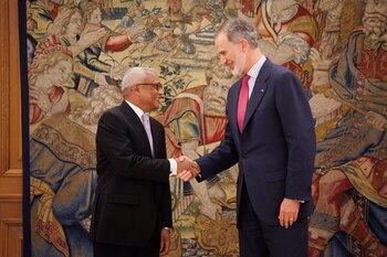 El Rey Felipe VI ha recibido en audiencia al presidente de Cabo Verde, José María Pereira Neves, en el Palacio de la Zarzuela en el marco de la visita de trabajo que está realizando a España. El mandatario caboverdiano ya se reunió el jueves pasado en el Palacio de la Moncloa con el presidente del Gobierno, Pedro Sánchez, con quien abordó el fortalecimiento de las relaciones bilaterales en ámbitos como la cooperación al desarrollo y la economía azul, especialmente el tratamiento del agua y la pesca sostenible, según informó el Gobierno. Pereira Neves tiene previsto participar mañana en Barcelona en la Conferencia de la Década Oceánica 2024, una cita mundial que reunirá a la comunidad y los socios del Decenio de los Océanos para celebrar los logros y establecer prioridades conjuntas para el futuro.