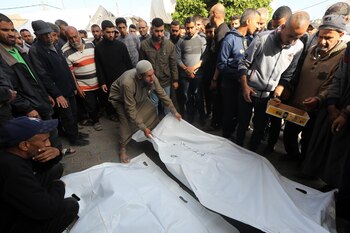 Los equipos de rescate palestinos han informado este martes de que han logrado recuperar hasta el momento más de 400 cadáveres tras la retirada de las tropas israelíes de la ciudad de Jan Yunis y de las inmediaciones del Hospital de Al Shifa, en el sur y norte de la Franja de Gaza, respectivamente. El portavoz de Defensa Civil de la Franja de Gaza, Mahmoud Basal, ha informado que las labores de búsqueda continúan, cuando ya se han logrado hallar 409 cadáveres, seis meses después del inicio de la cruenta ofensiva de Israel contra el enclave palestino, que se ha cobrado ya la vida de más de 33.300 personas. Basal ha contado que son todavía "decenas" de cuerpos sin vida los que siguen sepultados bajo los escombros y que han contado para estos trabajos de recuperación con la colaboración de agencias gubernamentales y organizaciones internacionales, recoge el diario gazatí 'Felesteen'. En ese sentido, Defensa Civil ha demandado a la comunidad internacional que no decaiga la entrega de equipos y material necesarios para continuar con las labores de recuperación de las víctimas, atrapadas, ha dicho, "bajo los escombros de las casas demolidas" por los ataques del Ejército israelí. A principios de abril, Israel anunció su retirada del Hospital de Al Shifa tras dos semanas de asedio y 200 supuestos terroristas abatidos durante las operaciones, así como 900 sospechosos detenidos. Según el Ejército israelíes, el mayor complejo médico de la Franja de Gaza era utilizado por Hamás para sus operaciones.