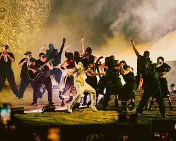 El rapero también tuvo entre sus invitados a ASAP Rocky, quien estuvo acompañado por su pareja Rihanna, que aplaudió emocionada desde el público.