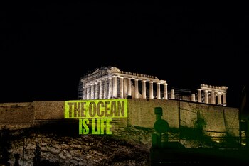Pocas horas después de escenificar en la colina de la Acrópolis de Atenas un llamativo recordatorio nocturno de que "El océano es vida", la oenegé hizo un llamamiento para que la Conferencia Nuestros Océanos 2024 que comienza mañana, martes, en la capital griega, sea aprovechada para adoptar medidas urgentes y concretas.