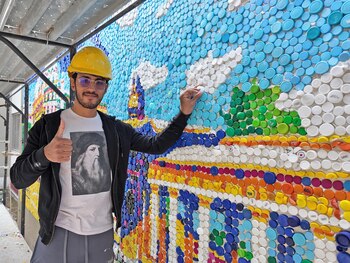 La obra ha sido colocada en el patio de una escuela de esta ciudad sureña y ha implicado una semana de trabajo además de un año recolectando los tapones de las botellas que la dan forma, con la ayuda de asociaciones y vecinos del lugar.