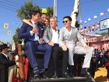 Demostrando una vez más su espectacular poder de convocatoria, José Luis López 'El Turronero' se ha convertido en uno de los grandes protagonistas de la segunda jornada de la Feria de Abril al reunir, en su caseta, a un abanico de lo más variopinto de rostros conocidos que no dudaron en responder a su llamada para disfrutar de un plato de jamón, un rebujito y música flamenca en buena compañía. Con la sonada ausencia de Bertín Osborne, que aunque se encuentra muy bien evita este tipo de aglomeraciones como reveló su íntimo amigo, el popular empresario de Ubrique sí contó con la presencia en su '*pequeña celebración' -"se me ha ido de las manos porque al final se entera todo el mundo" ha reconocido entre risas por las decenas de personas que iban llegando a su caseta- de Francisco Rivera, "dispuesto a darlo todo" guitarra en mano y con la compañía de Lourdes Montes, radiante con un diseño de gitana de su propia firma, 'Miabril'. También María del Monte e Inmaculada Casal, que poco a poco retoman sus compromisos sociales tras la detención de Antonio Tejado por su presunta implicación en el violento robo que sufrieron el pasado agosto. Tras oponerse en un escrito que su abogado presentó al juez a la salida de la cárcel en libertad provisional de su sobrino, la folclórica -que no habla de este delicado asunto- sí ha confesado que cada vez se encuentra mejor: "Vamos para adelante" ha asegurado. El actor Álex González, que levantó más de un suspiro a pesar de optar por americana gris clarita y camiseta de algodón blanca en lugar del tradicional traje y corbata, llegaba a la fiesta de 'El Turronero' con otros famosos como Paz Padilla y su hija Anna Ferrer, el torero Juan José Padilla, el periodista Carlos Herrera, el empresario Pedro Trapote, Miguel Báez 'El Litri'', Raquel Bollo, Gloria Camila o Jaime Martínez-Bordiu en compañía de su mujer Marta. "Es mi primera vez en la Feria y estoy encantado. Es un espectáculo y no hay que perdérselo. En la Feria es imposible no estar feliz" ha confesado Álex González, al que 'El Turronero' ha sorprendido con un paseo en coche de caballos por el Real. Y lo mejor, la compañía: Francisco Rivera fumándose un puro, y una divertida Paz Padilla a la que vimos haciendo gala de su sentido del humor bromeando con sus acompañantes en el carro. Un grupo de lo más original que ha puesto de manifiesto que el de Ubrique se ha convertido en el mejor anfitrión de la Feria.