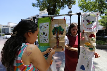 "La idea es tener esta estación para que las personas vengan a remendar su ropa. Por ejemplo, si hay una pieza rota o manchada, (se trata de) intervenirla con parches de tela y con bordado", indicó.