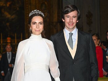 Miguel Fierro Corsini y Teresa Revuelta Guerrero se han dado el 'Sí, quiero' en la tarde de este sábado, 20 de abril, en la Basílica Pontificia de San Miguel, en Madrid. Un precioso templo con historia situado en el centro de la capital que ha reunido a algunos rostros conocidos de nuestro país. Un enlace matrimonial que anunciaba la revista ¡HOLA! hace unos días y que supone la unión de dos grandes familias: los Corsini y los Fierro. Miguel, es hijo de Bruno Fierro, perteneciente a una de las sagas de empresarios más importantes de España y por parte de su madre, desciende de los ya conocidos Corsini... Aunque en un primer momento se esperaba la presencia de Belén Corsini -a pesar de que no estaba confirmada- lo cierto es que ni ella, ni su marido, Carlos Fitz-James Stuart han acudido al enlace matrimonial que ha tenido lugar en el centro madrileño.