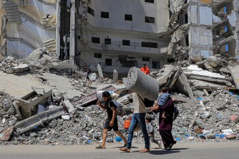 El presidente de Francia, Emmanuel Macron, y su homólogo egipcio, Abdelfatá al Sisi, han mantenido este lunes una conversación telefónica en la que han mostrado su "firme rechazo" a una ofensiva del Ejército de Israel sobre la ciudad de Rafá, en el sur de la Franja de Gaza, y que sirve de refugio para cerca de 1,5 millones de palestinos. "(Macron y Al Sisi) han expresado su firme oposición a una ofensiva israelí sobre Rafá, que no haría sino empeorar la situación obligando a la población a desplazarse al Sinaí", reza un comunicado de la Presidencia francesa. Ambos líderes han compartido también su "extrema preocupación" por el deterioro de la "ya catastrófica situación humanitaria" en la Franja, así como por los obstáculos a la entrega de ayuda humanitaria a los civiles, por lo que han subrayado la "urgente necesidad" de aumentar "drásticamente" el flujo de asistencia humanitaria hacia el enclave. En relación al conflicto, los dos mandatarios han abordado los riesgos de una escalada en Oriente Próximo tras el intercambio de ataques entre Irán e Israel, a los que han pedido "actuar con la máxima moderación". Asimismo, han mostrado su preocupación por la situación en la frontera entre Líbano e Israel, donde el Ejército israelí mantiene enfrentamientos con el partido-milicia chií Hezbolá en el marco de la ofensiva sobre Gaza, y han instado a alcanzar una solución diplomática basada en las resoluciones del Consejo de Seguridad de la ONU. Por último, Macron ha agradecido a Al Sisi su participación en la Conferencia Internacional Humanitaria para Sudán, celebrada la semana pasada en París y a la que asistieron representantes de 58 países, quienes lograron recaudar más de 2.000 millones de euros para el plan de respuesta de la ONU con el objetivo de ayudar a paliar una de las crisis humanitarias más graves del mundo.