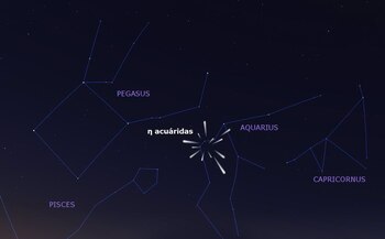 Este será un buen año para observar las Eta acuáridas, puesto que la Luna nueva, el 8 de mayo, permitirá seguir con oscuridad nocturna la lluvia de meteoros en su cénit, entre el 5 y el 6 de mayo. La lluvia de meteoros de las eta acuáridas es visible todos los años entre el 19 de abril y el 28 de mayo. Su observación es más favorable desde lugares ubicados en el trópico, como las islas Canarias, y en el hemisferio sur, aunque también pueden llegar a ser observadas en el hemisferio norte. Las eta acuaridas están asocidas con el cometa Halley, al igual que la lluvia de meteroros de las oriónidas, que tiene lugar en octubre. Los meteoros de las eta acuáridas tienen una tasa de actividad de entre 40 y 85 meteoros por hora y una velocidad bastante alta, unos 66 kilómetros por segundo, informa el Observatorio Astronómico Nacional (OAN). Para observadores en latitudes medias el radiante de las eta acuáridas se sitúa por encima del horizonte desde cuatro horas después de la medianoche hasta el amanecer. LA ESTELA DEL COMETA HALLEY Los meteoros de las eta acuáridas son fragmentos del cometa 1/P Halley. El Cometa Halley orbita alrededor del Sol cada 76 años y fue visto desde la Tierra por última vez en 1986. Como todos los años por estas fechas, la Tierra atraviesa un anillo poblado con los fragmentos desprendidos del cometa Halley. Cuando uno de esos fragmentos (o meteoroides) entra en contacto con la atmósfera terrestre, se calcina por la fricción con el aire creando así el resplandor luminoso que conocemos como meteoro o estrella fugaz. El cometa Halley también es el origen de otra lluvia de meteoros, las oriónidas, que tienen su máximo en torno al 21 de octubre. La correspondiente lluvia de meteoros parece tener un único centro de origen, un punto del que parecen surgir todas las estrellas fugaces. Ese punto se denomina "radiante" y su localización se utiliza para nombrar a la lluvia de estrellas. Así pues, las eta acuáridas tienen su radiante en la estrella eta de la constelación de Acuario.