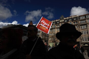 Muchos de los participantes llevaban claveles en la mano, en una marcha en la que se vieron banderas palestinas y hubo espacio para reivindicar el fin del bloqueo en Gaza.