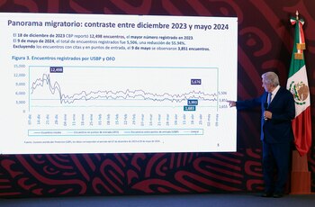 El mandatario argumentó en su conferencia matutina que tras una "crisis" en diciembre, con 12.000 migrantes diarios interceptados en la frontera de Estados Unidos con México, la cifra ha caído casi 56 % hasta 5.506 el 9 de mayo pasado, por lo que espera que siga esta tendencia.