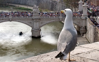 En Roma es frecuente ver a las gaviotas posadas en bancos, monumentos, coches y alimentándose de restos de comida abandonados en los contenedores y, en ocasiones, también se presencian escenas más desagradables con pájaros comiéndose a otros animales, como por ejemplo ratones o palomas.
