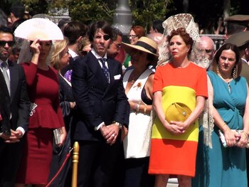 Disfrutando de un día de lo más apetecible en Sevilla, numerosos ciudadanos se han congregado en la icónica Plaza de España para mostrar públicamente su respeto a la bandera de España, símbolo del Estado, con el tradicional acto de la jura de bandera. Más de dos mil sevillanos han decidido ser testigos de este momentazo, entre los que hemos visto rostros conocidos como Ágatha Ruiz de la Prada, la cantante Joana Jiménez, el periodista José Antonio León, el torero Juan José Padilla o la cantante Davinia Jaen. La diseñadora asistía con su icónico vestido de la bandera de España y mantilla, y nos desvelaba que ha sido "muy bonito, maravilloso, espectacular, me ha encantado, me ha chiflado, lo que pasa que llevo unos taconazos y me duelen los pies que me los quiero cortar". Una cita que siempre tiene muy buena respuesta por parte de los sevillanos y que en esta ocasión ha estado caracterizada por el intenso calor que ha hecho en la capital andaluza.