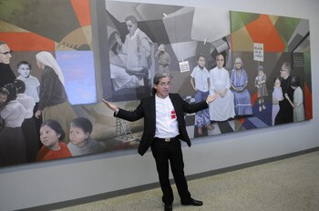 Detalló que la obra, del artista Rafael Valera y que muestra distintas estampas de la vida del religioso, fue presentada el 24 de marzo de 2010, bajo el Gobierno del expresidente Mauricio Funes, en el marco del 30 aniversario del magnicidio de Romero.