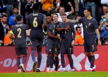 La selección de Inglaterra goleó (3-0) este lunes a Bosnia y Herzegovina en un duelo amistoso de preparación para la inminente Eurocopa 2024, mientras que Alemania, anfitriona de la cita continental que empieza el 14 de junio, no pudo (0-0) con Ucrania. Los de Gareth Southgate firmaron una victoria trabajada en St. James Park, desgastando a una Bosnia que cedió en su resistencia ya en el segundo tiempo. El seleccionador inglés dio minutos a muchas caras nuevas, un once de muy pocos titulares, y Cole Palmer fue quien hizo el 1-0, su primer gol con Inglaterra, en el minuto 60. El jugador del Chelsea se estrenó de penalti e inclinó el campo hacia la meta rival como hizo durante todo el partido Trent Alexander-Arnold. El del Liverpool dio la asistencia del 0-2 a Jack Grealish, mientras que Harry Kane, que entró desde el banquillo como el del Manchester City, firmó el 0-3 ya en el 89'. El delantero del Bayern de Múnich marcó su duodécimo gol con la selección en los últimos doce partidos. Inglaterra recuperó así el sabor de la victoria, que no tenían desde mediados de noviembre, y contra Islandia el viernes cerrarán su preparación para la EURO, donde esperan sacarse la espina de la final perdida hace tres años. Por otro lado, Alemania no tuvo puntería en su amistoso en Nuremberg ante una Ucrania que también estará en la cita continental y que quiso aprovechar su examen de nivel. Pese a tener muchas ocasiones y merecer la victoria, lo cierto es que el empate alimenta las dudas sobre Julian Nagelsmann y su pobre racha de resultados. Sin los campeones de Europa con el Real Madrid Toni Kroos y Antonio Rüdiger, Alemania sí tuvo un once inicial bastante titular con Gündogan, Musiala, Wirtz y Havertz en la parte ofensiva, pero Ucrania se defendió como pudo y con algo de fortuna para salir reforzada ante una favorita que, con la presión de ser anfitriona, está bajo lupa con un amistoso más contra Grecia.