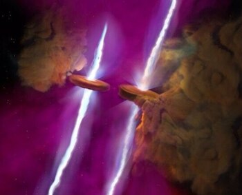 Observaciones con el radiotelescopio ALMA y el telescopio espacial Webb han descubierto discos y chorros gemelos paralelos que surgen de estrellas jóvenes en un sistema de estrellas múltiples. Este descubrimiento fue inesperado y sin precedentes, dada la edad, el tamaño y la composición química de las estrellas, los discos y los chorros. Su ubicación en una parte conocida y bien estudiada del Universo aumenta la emoción, según un comunicado del radiotelescopio ALMA. El Atacama Large Millimeter/submillimeter Array (ALMA) y del Instrumento de infrarrojo medio (MIRI) del Telescopio espacial James Webb (JWST) observan partes muy diferentes del espectro electromagnético. Su uso conjunto permitió al equipo científico descubrir a estos gemelos, ocultos en longitudes de onda de radio e infrarrojos en el sistema estelar WL20, ubicado en el cercano complejo de nubes moleculares rho Ophiuchi, a más de 400 años luz de distancia de nosotros. "Lo que descubrimos fue absolutamente descabellado", comparte en un comunicado la astrónoma Mary Barsony. "Conocíamos el sistema estelar WL20 desde hacía mucho tiempo. Pero lo que nos llamó la atención es que una de las estrellas del sistema parecía mucho más joven que el resto. Con MIRI y ALMA juntos, vimos que esta estrella era en realidad dos estrellas una al lado de otra. Un disco rodeaba cada una de estas estrellas, y cada disco emitía chorros paralelos al otro". ALMA detectó los discos, mientras MIRI encontró los chorros. El coautor Valentin J.M. Le Gouellec de NASA-ARC recuperó y redujo datos de archivo de ALMA para revelar la composición de los discos. Al mismo tiempo, Lukasz Tychoniec del Observatorio de Leiden proporcionó imágenes de alta resolución que muestran el enorme tamaño de los discos, equivalente a cerca de 100 veces la distancia entre la Tierra y el Sol. Otro coautor, Martijn L. van Gelder, proporcionó recursos para procesar los datos recopilados por MIRI, que revelaron la composición química de los chorros. Barsony añade: "Así que, si no fuera por MIRI, ni siquiera sabríamos que estos chorros existen, lo cual es sorprendente". Las observaciones en alta resolución de ALMA de los discos que rodean las dos estrellas recién observadas revelaron la estructura de los discos, como explica Barsony: "Alguien que observe estos datos de ALMA sin saber que hay chorros gemelos pensaría, oh, es un borde grande en el disco con una agujero central, en lugar de dos bordes en los discos y dos chorros. Eso es bastante notable". Otra cosa destacable de este descubrimiento es que es posible que nunca haya tenido la oportunidad de ocurrir. El científico del JPL Michael Ressler explica: "Gran parte de la investigación sobre protoestrellas binarias se centra en unas pocas regiones cercanas de formación de estrellas. Me habían concedido algo de tiempo de observación con JWST y decidí dividirlo en unos pocos proyectos pequeños. Para un proyecto, decidí estudiar binarias en la región de formación estelar de Perseo. Sin embargo, había estado estudiando WL20, que se encuentra en la región rho Ophiuchus, casi en la parte opuesta del cielo, durante casi 30 años, y pensé, '¿por qué no introducirlo a escondidas? Nunca tendré otra oportunidad, incluso si no encaja con las demás. Tuvimos un accidente muy afortunado con lo que encontramos, los resultados son sorprendentes". Al combinar datos de múltiples longitudes de onda de ALMA y JWST, estos nuevos hallazgos arrojan luz sobre los complejos procesos involucrados en la formación de múltiples sistemas estelares. El grupo planea utilizar las futuras capacidades mejoradas de ALMA, como la Actualización de Sensibilidad de Banda Ancha, para continuar desentrañando los misterios que rodean el nacimiento de estrellas y sistemas planetarios.