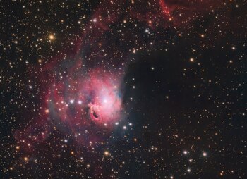 El telescopio de sondeo VLT (VST), ubicado en el Observatorio Paranal de ESO en el desierto chileno de Atacama, ha captado la colorida nebulosa Gum 3, que se parece a un pez Koi en la imagen. Equipado con el instrumento OmegaCAM, una enorme cámara de 268 megapíxeles, el telescopio está diseñado para sondear grandes áreas del cielo austral en luz visible y tomar imágenes impresionantes como esta. Gum 3 es una nube interestelar de gas y polvo ubicada a unos 3600 años luz de distancia, entre las constelaciones de Monoceros y Canis Major. Recibe su nombre en honor a Colin Stanley Gum, un astrónomo australiano que catalogó 84 nebulosas en el cielo austral. Cuando la intensa radiación ultravioleta de las estrellas jóvenes cercanas choca con los átomos de hidrógeno en la nube, estos emiten luz visible en colores muy específicos, que vemos como tonos de rojo y rosa en la imagen. Al mismo tiempo, las diminutas partículas de polvo dentro de la nube reflejan la luz de las estrellas, especialmente los colores azules, similares a los que hacen que el cielo se vea azul aquí en la Tierra. Este juego de colores hace que las nebulosas como esta sean espectaculares de ver, informa el ESO en un comunicado. Esta imagen no solo muestra el color, sino también la falta de él. Justo a la derecha de la parte más brillante de la nube, hay una gran masa de polvo que bloquea parte de la luz visible, ocultando las estrellas del VST y de nosotros.