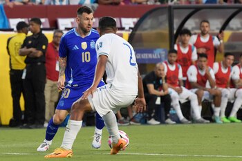 Argentina no había soltado el balón desde el pitido inicial cuando, en su primera recuperación, Guatemala sacó una peligrosa falta en el lateral del área de Emiliano Martínez.