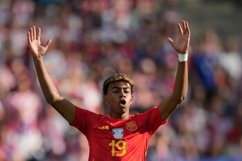 El jugador de la selección Lamine Yamal se mostró "muy contento" por la victoria de España, 3-0 sobre Croacia, y por su histórico debut en la Eurocopa, donde se convirtió en el más joven en jugar el torneo, al tiempo que explicó que vienen demostrando que son "un equipo muy eficaz". "Muy contento, sobre todo por la victoria del equipo y por el debut. Hay que seguir, pensar en el siguiente partido", manifestó Lamine Yamal en declaraciones a TVE, recogidas por Europa Press, tras el partido en el Olímpico de Berlín. El jugador del FC Barcelona se estrenó en la gran cita continental de selecciones con 16 años y fue de menos a más cumpliendo con su cometido en la banda derecha. "Había que dar espacio al equipo, poder jugar por dentro, y todo lo que pueda ayudar al equipo, así estaré", comentó. "Hemos salido con mucha confianza, somos un equipo muy eficaz, lo estamos demostrando en todos los partidos, así que estamos muy contentos. El trabajo de estos meses ha salido", sentenció el futbolista del FC Barcelona. Yamal entró en los libros de historia de la Eurocopa con sus 16 años y 338 días que le convirtieron en el futbolista más joven en jugar en la competición, superando casi en un año al polaco Kacper Kozlowski, que precisamente tenía ese honor tras jugar en la pasada edición en el 1-1 ante la selección española, y siendo el primer menor de 17 años en hacerlo. El extremo blaugrana, ya el más joven de la historia del combinado nacional en debutar y marcar cuando lo hizo el pasado mes de septiembre ante Georgia, fue titular ante los croatas y disputó casi todo el encuentro, siendo sustituido en el minuto 86 por Ferran Torres. Suya fue la asistencia para el 3-0, obra de Dani Carvajal.