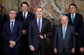 La Real Academia Española (RAE) conmemorará este miércoles 19 de junio el décimo aniversario de la proclamación de Felipe VI como Rey de España con un debate en el que participarán varios de sus académicos con reflexiones personales sobre este periodo. El acto contará con las intervenciones del director de la Academia y presidente de la ASALE, Santiago Muñoz Machado, y de los académicos de la RAE Víctor García de la Concha, Carme Riera, José Antonio Pascual, José Manuel Sánchez Ron, José María Merino, Soledad Puértolas, Pedro Álvarez de Miranda, Aurora Egido, Paloma Díaz-Mas, Dolores Corbella y Clara Sánchez. El Rey ejerce el Alto Patronazgo de la Real Academia Española, tal y como establece el artículo 62j de la Constitución. Por ello, y con motivo del décimo aniversario de la proclamación de Felipe VI, la institución organiza este acto. Así, doce de sus académicos ofrecerán sus reflexiones personales, desde distintas perspectivas, sobre lo que ha supuesto esta primera década de reinado. La relación del Rey con la RAE ha sido constante durante estos diez últimos años, en los que ha presidido varias sesiones del pleno y diversos actos de la Academia. En el programa, Muñoz Machado abordará la temática 'La constitución de la princesa'; García de la Concha, 'Nuestra lengua familiar mestiza'; Carme Riera, 'Monarquicanos'; José Antonio Pascual, 'Bajar la voz'; Sánchez Ron, 'Que diez años es mucho' y José María Merino, 'De la desmemoria española'. Además, Soledad Puértolas hablará de 'Diez años de vida'; Pedro Álvarez de Miranda, de 'Felipe VI y la Real Academia Española'; Aurora Egido, de 'Corazón de rey'; Paloma Díaz-Mas, de 'Diez años de reinado en diez mensajes'; Dolores Corbella de 'Voces que definen una década' y Clara Sánchez, de 'Qué se le dice a un rey'.