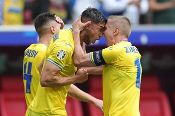 Ucrania se ha impuesto a Eslovaquia (1-2) este viernes en la segunda jornada del Grupo E de la Eurocopa 2024 en el Merkur Spiel-Arena de Düsseldorf, en un encuentro en el que consiguió dar la vuelta al gol inicial de Schranz gracias a los tantos de Shaparenko y del valencianista Yaremchuk, metiéndose así de lleno en la lucha por el pase a los octavos de final del torneo. Si el Grupo E se antojaba uno de los más inciertos tras los resultados de la primera jornada, en la que Ucrania y Bélgica, a priori favoritas, cayeron derrotadas, ahora, tras el triunfo de los ucranianos lo está aun más. La victoria mete a los de Rebrov de lleno en la lucha por el pase, ya que igualan a puntos con Eslovaquia y Rumanía a falta de un partido. Un resultado que carga de presión al combinado belga, que afrontará su partido ante los rumanos de este sábado con la necesidad de puntuar, ya que es el único equipo del Grupo E que no lo ha hecho. El partido arrancaba con sorpresa en la portería ucraniana, en la que no estaba el madridista Andriy Lunin; su bajo rendimiento en el partido ante Rumanía provocó que Rebrov apostara de inicio por Trubin. Y el guardameta del Benfica tardó únicamente 10 minutos en darle la razón al técnico ucraniano. En su primera intervención, sacó el pie derecho para evitar el gol de Haraslin, que había sacado un golpeo raso desde el interior del área. Tan solo un minuto después, su parada sería aun más meritoria rechazando a bocajarro una volea desde el área pequeña de Schranz. Pero no serían las únicas. En el minuto 16 tuvo que volver a intervenir para detener un gran golpeo de falta de Hancko, que buscaba la escuadra derecha en lo que sería la antesala del primer gol del partido. En la siguiente jugada, un despiste de la defensa ucraniana en un saque de banda acabó en un centro al segundo palo desde el costado izquierdo de Haraslin que fue cabeceado picado por Schranz, que pilló a contrapié a Trubin, que nada pudo hacer en esta ocasión. Para encontrar el primer acercamiento peligroso de Ucrania en el partido hubo que esperar hasta el 27, cuando Dovbyk recibió un balón en el interior del área eslovaca y, tras recortar a un defensor, remató a portería, pero su disparo fue interceptado por Vavro, que lo envió a córner. Y la más clara en clave ucraniana llegó cinco minutos después cuando, tras una gran jugada trenzada entre Yarmolenko y Dovbyk, el balón le cayó a Tymchyk, que con un remate raso cruzado, estrelló el balón en el palo derecho de la portería eslovaca. El asedio ucraniano continuaría hasta el final de la primera mitad, con otra gran ocasión en las botas de Mudryk que, tras ganar una carrera a su par, se plantó en el mano a mano ante Dubravka, pero en lugar de rematar buscó el pase para Dovbyk, un envío que fue despejado por Skriniar. Y así, con un Ucrania al alza pero sin aprovechar sus oportunidades, se marcharon ambos equipos a vestuarios. Nada varió en la reanudación. Ucrania volvió del descanso con la única intención de igualar el partido lo antes posible, y antes de los 10 minutos de reanudación ya lo logró. El empate llegó tras una gran jugada por banda izquierda que acabó con un centro raso de Zinchenko al punto de penalti buscando la llegada de segunda línea de Shaparenko que, con un disparo al palo corto con su pierna izquierda, consiguió batir a Dubravka y colocar el 1-1 en el marcador. El gol hizo despertar a Eslovaquia, que poco a poco fue igualando a base de intensidad el partido, llegando incluso a inquietar en alguna ocasión la portería ucraniana. Sin embargo, el siguiente acercamiento peligroso del partido volvería a protagonizarlo Ucrania; en un contragolpe comandado por el delantero del Valencia Yaremchuk, que había sustituido unos minutos antes a Dovbyk, asistió para a Mudryk, que disparó muy escorado con su pierna izquierda para acabar estrellando el balón en el palo derecho de la portería de Dubravka. Ucrania seguía creciendo en el partido y la remontada no tardaría en consumarse. En el minuto 80, Yaremchuk recibió un gran envío de Shaparenko a la espalda de Skriniar en la parte derecha del interior del área, y, tras un control fantástico y la no salida de Dubravka, consiguió meter la punta de su bota derecha para superar al guardameta eslovaco y poner el 1-2 en el marcador. Conseguía así Ucrania darle la vuelta a un partido que se le había complicado más de lo previsto. Aun quedaba el tramo final del encuentro, y los eslovacos no iban a darse por vencidos. De hecho, el gol en contra espoleó a los de Calzona, que, en un ataque de orgullo se lanzaron a por el empate. Sin embargo, pese a que merodearon el área ucraniana hasta el pitido final, disponiendo incluso de varias jugadas a balón parado peligrosas, el marcador no se movería, consumando la victoria ucraniana. FICHA TÉCNICA. --RESULTADO: ESLOVAQUIA, 1 - UCRANIA, 2 (1-0, al descanso). --ALINEACIONES. ESLOVAQUIA: Dubravka; Pekarik, Vavro, Skriniar, Hancko (Obert, min.67); Kucka, Lobotka, Duda (Benes, min.60); Schranz (Sauer, min.86), Bozenik (Strelerc, min.60) y Haraslin (Suslov, min.67). UCRANIA: Trubin; Tymchyk, Zabarnyi, Matviienko, Zinchenko; Shaparenko (Talovierov, min.92), Brazhko (Sydorchuk, min.85), Sudakov; Yarmolenko (Zubkov, min.67), Dovbyk (Yaremchuk, min.67) y Mudryk (Malinovsky, min.85). --GOLES: 1-0, min.17: Schranz. 1-1, min.54: Shaparenko. 1-2, min.80: Yaremchuk. --ÁRBITRO: Michael Oliver (ING). Amonestó a Yaremchuk (min.84) por parte de Ucrania. --ESTADIO: Merkur Spiel-Arena (Düsseldorf), 43.910 espectadores.