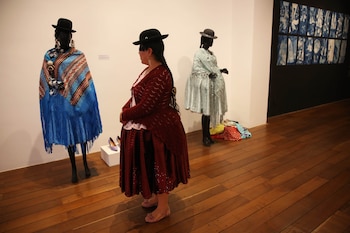 La exposición, que está abierta hasta el 6 de julio, es el fruto de una investigación sobre las experiencias de las cholas de Bolivia a través de su indumentaria.
