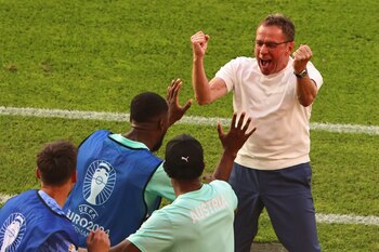 Y aún quedaba lo mejor. Pese a reservar a numerosos jugadores para la última jornada frente a Países Bajos por apercibimiento de sanción, Rangnick disfrazó a los suyos con el traje de la 'Naranja Mecánica' -la original, no esta de Koeman- y sometió por tres veces a los tulipanes para, aprovechando el tropiezo de Francia ante Polonia, enfilar la primera plaza del grupo D e ir por el lado amable del cuadro.