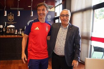 El presidente del Comité Olímpico Español (COE), Alejandro Blanco, se ha desplazado este viernes hasta la Ciudad del Fútbol en Las Rozas (Madrid) para mostrar su apoyo al entrenador Santi Denia y también a los futbolistas de la selección olímpica masculina, a menos de una semana de viajar a tierras francesas para afrontar los Juegos de París. Pablo Lozano, vicepresidente de la Real Federación Española de Fútbol (RFEF) y responsable de selecciones masculinas, fue el encargado de recibir al presidente del COE en Las Rozas. Así, Lozano agradeció a Blanco su encuentro con los jugadores internacionales. "En nombre de nuestro presidente, Pedro Rocha, y de toda la RFEF le hemos dado las gracias a Alejandro Blanco por la visita a nuestra selección, por contarle a los jugadores lo que se van a encontrar en los Juegos y por transmitirles esa grandeza de lo que significa jugar unos Juegos Olímpicos", comentó Lozano desde las instalaciones roceñas. Por su parte, Blanco transmitió a los jugadores su entusiasmo con el comienzo del sueño compartido en París: "Con el fútbol, tanto en el equipo masculino como femenino, estamos súper emocionados porque los resultados los avalan. Creo que van a ser unos dignísimos continuadores de la historia del oro de Barcelona y las platas de Sídney, Amberes y Tokio. Llevamos unos equipos sensacionales". Según indicó la RFEF en una nota de prensa, el presidente del COE aludió al equipo entrenado por Luis de la Fuente, flamante finalista de la Eurocopa masculina que se está disputando en Alemania, para hablar del buen estado del balompié español. "Tenemos que estar felices porque tenemos el mejor fútbol del mundo. Estoy convencido de que después de la Eurocopa volveremos de París con grandes éxitos", dijo al respecto.