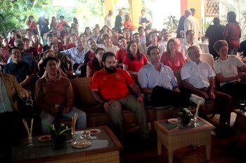 El titular del Parlamento hondureño, Luis Redondo, el subsecretario de Relaciones Exteriores, Gerardo Torres, el arzobispo de Tegucigalpa, José Vicente Nácher, presenciaron la final en la residencia de Nuño García.