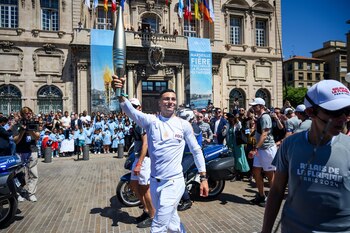 La antorcha olímpica ha llegado este domingo a París a 12 días de que comiencen los Juegos Olímpicos, en una ceremonia en la que ha participado el presidente de la república Emmanuel Macron y en el que un militar montado a caballo fue el encargado de descender la Avenida Foch hasta el Arco del Triunfo, según informó el Comité Olímpico Internacional (COI). A tan solo 12 días de que comiencen los Juegos Olímpicos de París 2024, y coincidiendo con el día nacional de Francia, la antorcha olímpica ha llegado a las calles de París. Ahí, un militar montado a caballo ha sido protagonista portando la 'llama olímpica' por la Avenida Foch, desembocando en el emblemático Arco del Triunfo de la capital gala, donde le esperaban un grupo de jóvenes del distrito de Saine-Sant-Denis, barrio en el que se encuentra el estadio olímpico. Tras ello, el militar pasó el 'fuego olímpico' a los jóvenes, todos ellos vestidos de blanco, ubicados al frente de la tribuna presidencial que se encontraba en el Arco del Triunfo, donde estaba presente el presidente de Francia en funciones, Macron, junto a su esposa, que saludó la llegada de la antorcha mientras sonaba el himno francés. Una antorcha que portarán por las calles de París unas 520 personas, en relevos de entre 200 y 400 metros de distancia. Entre los relevistas se encuentran personalidades como el exfutbolista y seleccionador francés del equipo olímpico masculino de fútbol, Thierry Henry, el actor Jamel Debbouze, la bailarina Sylvie Tellier, el cantante Kim Seok-Jin o la medallista olímpica de esgrima Laura Flessel. El recorrido comenzará este lunes en La Chapelle Arena, pabellón donde se disputaran las competiciones de gimnasia, bádminton y esgrima, y pasará por lugares emblemáticos de la capital francesa como la Asamblea Nacional, el museo del Louvre o la plaza de la Bastilla. Concluirá en la plaza de la República.