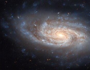 El telescopio espacial Hubble de la NASA/ESA ha captado una instantánea detallada de la galaxia espiral NGC 3430, que se encuentra a 100 millones de años luz de la Tierra en la constelación de Leo Minor. Otras galaxias ubicadas relativamente cerda de la galaxia espiral NGC 3430 están justo fuera del marco de la imagen, pero una está lo suficientemente cerca como para que la interacción gravitatoria esté impulsando la formación de estrellas en NGC 3430, visibles como manchas de color azul brillante cerca pero fuera de la estructura espiral principal de la galaxia, según ha informado la NASA. Este ejemplo de una espiral galáctica contiene un núcleo brillante desde el cual una serie de brazos en forma de rueda de molino parece irradiar hacia afuera. Los oscuros carriles de polvo y las brillantes regiones de formación estelar ayudan a definir estos brazos espirales. La forma distintiva de NGC 3430 puede ser una de las razones por las que el astrónomo Edwin Hubble la utilizó para ayudar a definir su clasificación de galaxias. Edwin Hubble, homónimo del telescopio espacial Hubble, escribió un artículo en 1926 que describía la clasificación de unas cuatrocientas galaxias según su apariencia: espirales, espirales barradas, lenticulares, elípticas o irregulares. Esta sencilla tipología resultó extremadamente influyente, y los esquemas detallados que utilizan los astrónomos hoy en día todavía se basan en el trabajo de Edwin Hubble. NGC 3430 en sí es una espiral que carece de una barra central con brazos abiertos y claramente definidos, clasificada hoy como una galaxia SAc.