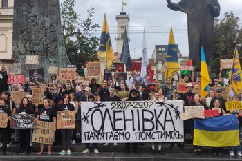 "Creíamos que estábamos a punto de ser intercambiados. En lugar de ello, nos despertaron por la noche las explosiones", citó Novosiadlo el testimonio de un superviviente ante varios centenares de asistentes que acudieron al acto para exigir que Rusia rinda cuentas y libere a los prisioneros de guerra.
