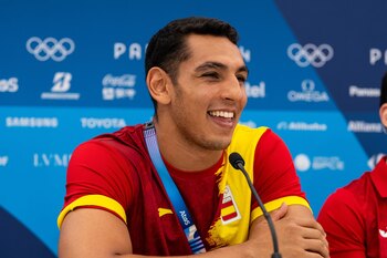 El boxeador español Ayoub Ghadfa Drissi ha avanzado este lunes a los cuartos de final de los Juegos Olímpicos de París (Francia), dentro de la categoría de +92 kg, gracias a su victoria por puntos frente al kazajo Kamshybek Kunkabayev, acercándose a las medallas igual que en la víspera lo hizo el también español Enmanuel Reyes en -92 kg. Ghadfa, que el pasado 29 de abril se proclamó campeón de Europa de este peso superpesado, fue de menos a más en el cuadrilátero del París Norte Arena. Aunque el marbellí mostró ahínco desde el inicio y su rival mantuvo las distancias, fue Kunkabayev quien se apuntó el primer asalto por 3-2 (10, 10, 9, 9 y 10 vs 9, 9, 10, 10 y 9). La postura zurda del kazajo se vio superada por la postura ortodoxa de su contrincante en el segundo asalto, decantado claramente a favor del español por 1-4 (10, 9, 9, 9, y 9 vs 9, 10, 10, 10 y 10). Incluso había dado espectáculo Ghadfa al público, levantándose de la lona con un gesto más propio de la gimnasia artística que del boxeo. Dos buenos golpes de derechas al comienzo del tercer y último asalto, en el estómago, complicaron la pelea a Kunkabayev, quien a minuto y medio de zanjar el combate recibió un zurdazo alto. Luego intentó defenderse el kazajo con agarrones y una serie de golpes cortos, cada vez más de cerca, quizá para que los jueces dudasen sobre las iniciativas. Sin embargo, lo exhibido por uno y otro púgil era evidente y así lo reconoció el árbitro iraní Babak Bordbar Haghighi, cuyo '10' otorgado a Ghadfa fue clave para certiticar su triunfo. El marcador definitivo fue de 2-3 (30, 28, 28, 28 y 29 vs 27, 29, 29, 29 y 28) para el boxeador de Marbella, que en cuartos de final peleará con el armenio Davit Chaloyan.