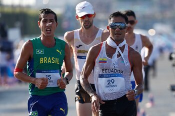 El ecuatoriano marcó un crono de 1h18:55, por 1h19:09 del brasileño y 1h19:11 del español, que aventajó en un segundo al italiano Massimo Stano, campeón en Tokio 2020.