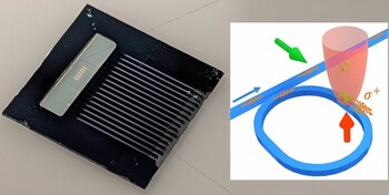 Investigadores de la Universidad de Purdue han atrapado átomos de cesio en un circuito fotónico integrado, que se comporta como un transistor para fotones similar a los transistores electrónicos. Estos átomos atrapados demuestran el potencial para construir una red cuántica basada en circuitos nanofotónicos integrados de átomos fríos. El equipo, dirigido por Chen-Lung Hung, profesor asociado de física y astronomía en la Facultad de Ciencias de la Universidad de Purdue, ha publicado su descubrimiento en Physical Review X. "Hemos desarrollado una técnica para utilizar láseres para enfriar y atrapar firmemente átomos en un circuito nanofotónico integrado, donde la luz se propaga en un pequeño 'cable' fotónico, o más precisamente, una guía de ondas que es más de 200 veces más delgada que un cabello humano", explica Hung, que también es miembro del Instituto de Ciencia e Ingeniería Cuántica de Purdue. "Estos átomos están 'congelados' a solo unas décimas por encima de -273,15 grados Celsius, la temperatura del cero absoluto, y están esencialmente inmóviles. A esta temperatura fría, los átomos pueden ser capturados por un 'rayo tractor' dirigido a la guía de ondas fotónicas y se colocan sobre ella a una distancia mucho más corta que la longitud de onda de la luz, alrededor de 300 nanómetros o aproximadamente el tamaño de un virus. A esta distancia, los átomos pueden interactuar de manera muy eficiente con los fotones confinados en la guía de ondas fotónicas. "Usando instrumentos de nanofabricación de última generación en el Centro de Nanotecnología Birck, modelamos la guía de ondas fotónica en una forma circular con un diámetro de alrededor de 30 micrones (tres veces más pequeño que un cabello humano) para formar un llamado resonador de micro-anillo. "La luz circularía dentro del resonador de e interactuaría con los átomos atrapados", añade Hung. Un aspecto clave de la función que el equipo demuestra en esta investigación es que este resonador de micro-anillo acoplado a átomos sirve como un "transistor" para los fotones. Pueden utilizar estos átomos atrapados para bloquear el flujo de luz a través del circuito. Si los átomos están en el estado correcto, los fotones pueden transmitirse a través del circuito. Los fotones se bloquean por completo si los átomos están en otro estado. Cuanto más fuerte interactúen los átomos con los fotones, más eficiente será esta compuerta. "Hemos atrapado hasta 70 átomos que podrían acoplarse colectivamente a los fotones y bloquear su transmisión en un chip fotónico integrado. "Esto no se había logrado antes", dice Xinchao Zhou, estudiante de posgrado en Física y Astronomía de Purdue. La nueva técnica permite enfriar con láser de manera muy eficiente muchos átomos en un circuito fotónico integrado. Una vez que muchos átomos quedan atrapados, pueden interactuar colectivamente con la luz que se propaga en la guía de ondas fotónica. "Esto es único para nuestro sistema porque todos los átomos son iguales e indistinguibles, por lo que podrían acoplarse a la luz de la misma manera y desarrollar coherencia de fase, lo que permite que los átomos interactúen con la luz colectivamente con mayor fuerza. Solo imagine un bote que se mueve más rápido cuando todos los remeros reman en el bote en sincronía en comparación con el movimiento no sincronizado", dice Hung. "En contraste, los emisores de estado sólido integrados en un circuito fotónico no son 'lo mismo' debido a que los entornos ligeramente diferentes influyen en cada emisor. Es mucho más difícil para muchos emisores de estado sólido desarrollar coherencia de fase e interactuar colectivamente con los fotones como átomos fríos. "Podríamos utilizar átomos fríos atrapados en el circuito para estudiar nuevos efectos colectivos", continúa Hung. La plataforma demostrada en esta investigación podría proporcionar un enlace fotónico para la futura computación cuántica distribuida basada en átomos neutros. También podría servir como una nueva plataforma experimental para estudiar las interacciones colectivas luz-materia y para sintetizar gases atrapados degenerados cuánticos o moléculas ultrafrías. "A diferencia de los transistores electrónicos que se utilizan en la vida diaria, nuestro circuito fotónico integrado acoplado a átomos obedece a los principios de superposición cuántica", explica Hung. "Esto nos permite manipular y almacenar información cuántica en átomos atrapados, que son bits cuánticos conocidos como qubits. Nuestro circuito también puede transferir de manera eficiente la información cuántica almacenada en fotones que podrían 'volar' a través del cable fotónico y una red de fibra para comunicarse con otros circuitos integrados acoplados a átomos o interfaces átomo-fotón. Nuestra investigación demuestra el potencial para construir una red cuántica basada en circuitos nanofotónicos integrados de átomos fríos", concluyó.