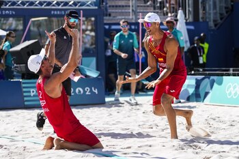 El jugador de vóley playa español Pablo Herrera, subcampeón olímpico en Atenas 2004, afirmó que se "merecía" acceder, por vez primera, a los cuartos de final de unos Juegos formando pareja con Adrián Gavira, y que se encuentran con "confianza plena" para pugnar por el pase a las semifinales. Después de derrotar a los polacos Michal Bryl y Bartosz Losiak en dos sets (23-21 y 21-18), Pablo Herrera y Adrián Gavira rompieron el 'techo' de cristal de los octavos, una ronda que se le había resistido al castellonense desde Pekín en 2008 y hasta Tokyo 2020, las últimas cuatro ediciones con el gaditano como compañero. Herrera vio cómo pasaba el saque de Gavira por encima de la red justo al medio de la pista, entre Losiak y Bryl, y que el balón se posó en la arena sembrada a la sombra de la Torre Eiffel y empezó a correr sin rumbo alguno. "No me lo creía, luego he visto a Adri al fondo de la línea y nos hemos abrazado. La verdad es que estoy muy contento. Hemos roto la barrera que teníamos de octavos y ahora, a descansar, a hacer las pesas esta tarde y a disfrutar un poco de la familia también", comentó bajo la grada del Estadio de la Torre Eiffel. Polonia era un rival duro, entre los cinco mejores parejas del mundo, pero la táctica era cargar el juego sobre Losiak, al que habían derrotado en Tokyo. "A lo mejor, eso lo podía tener en la cabeza y nos ha ido bien la estrategia de sacarle más sobre él y estamos muy contentos de seguir a la siguiente fase", indicó el castellonense. El pase a los cuartos es el resultado de muchos años de trabajo juntos, más de tres lustros juntos, ellos y las familias que les acompañaron este lunes bajo el sofocante calor del agosto parisino. "En este año y medio atrás hemos tenido muchos altibajos fuera del campo, pero el equipo siempre ha seguido igual, peleando y creo que nos merecemos lo que está sucediendo aquí en los Juegos", destacó. Herrera subrayó el trabajo de su preparador físico, Javier Hernández, quien está "haciendo magia" con la pareja española, y eso se está viendo en la arena de París 2024, donde compiten con dúos mucho más jóvenes que los casi 80 (78) años que acumulan entre ambos. "Nos viene súper bien el parar un día y medio para recuperar y, de momento, no hay ninguna molestia", apuntó. A juicio de Herrera, quien de niño empezó en la natación y se pasó al vóley playa por 'culpa' de un profesor de educación física del instituto, la pareja española "se ha ido soltando" con el paso de la competición en París. "En el inicio, empecé bastante nervioso, con fantasmas por ahí por la cabeza, pero se han ido yendo y ahora creo que el equipo está al 100% de confianza", destacó. "TENEMOS A LA TORRE EIFFEL PARA DAR EL CAMPANAZO" Igualmente emocionado Adrián Gavira celebró que, al fin, alcanzaron los cuartos de final. "Era lo mínimo que se merece este equipo después de 16 temporadas peleando con los mejores. Es momento de disfrutar, ahora veremos a nuestro cuerpo técnico que está ahí esperando, nos daremos un gran abrazo y a seguir trabajando", comentó. Pero Gavira no levanta el pie. Tras ganar al dúo polaco le dijo a Herrera que esta tarde "toca" gimnasio. "Hay que seguir trabajando para seguir soñando y vamos a pelear. El saque quizás no me ha entrado mucho. Le he hecho caso al entrenador, ahora le diré que es culpa suya. Porque me dijo: 'tú insiste, insiste'", bromeó. A Polonia querían romperle en la recepción, pero también vieron que no estaban muy cómodos con el saque flotante y Gavira decidió cambiar al final del segundo set para presionar al rival. "Ellos estaban arriesgando más de la cuenta en el saque porque no encontraban la manera de 'meternos mano'", explicó. Sobre el rival en las semifinales, la pareja noruega Mol y Sorum o la estadounidense Evans y Bundiger, a los que derrotaron en la primera fase, el gaditano dijo que la lógica apunta a la nórdica. "A priori,debe ganar Noruega. Son los favoritos para ganar el torneo, junto con Suecia, pero son unos Juegos y nosotros nos encontramos disfrutando. Tenemos a una gran testigo aquí como la Torre Eiffel para dar un campanazo y eliminar a los campeones olímpicos si ganan su partido con Estados Unidos", advirtió antes de marcharse en busca del abrazo de su cuerpo técnico.