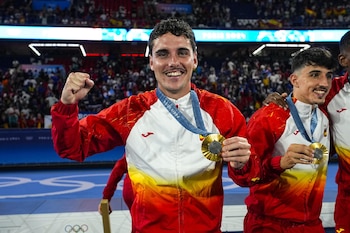 El futbolista español Sergio Camello ha comentado este viernes que, cuando "la gente ya dudaba" de su desempeño con la selección nacional, "el fútbol es así de caprichoso" y le ha dado la oportunidad de disputar la final masculina de los Juegos Olímpicos de París 2024, donde él ha marcado dos goles en la prórroga para vencer por 3-5 a Francia. "Es que es así de caprichoso el fútbol. Ha sido un año duro, un año que no ha querido entrar el balón, que no he dejado de trabajar", dijo Camello a los micrófonos de la emisora COPE desde el Parque de los Príncipes, aludiendo a su temporada algo gris con el Rayo Vallecano. "Aquí ha pasado lo mismo, he estado en la grada muchos partidos, pude jugar uno y perdimos. La gente ya dudaba y el fútbol es así de caprichoso. No sé el porqué, pero ha querido que sea yo", indicó el delantero rayista, autor de dos goles con sendas vaselinas en esa final olímpica. Así, admitió que "jamás lo hubiese soñado". "Yo solo soñaba ser futbolista y este año, si te digo la verdad, después del año que he tenido, de lo duro que ha sido, no daba mucho por entrar en la convocatoria", respondió a los periodistas de la cadena COPE. "Y bueno, el míster siempre ha confiado en mí, me lo ha hecho ver, ha hecho que estuviese preparado para este momento y él me lo dijo, me lo dijo ayer y me dijo que había soñado que el gol de que nos daba el oro lo metía yo. Esto es verídico y... bueno, se ha hecho realidad", afirmó sobre el apoyo recibido por el seleccionador de la 'Roja', Santi Denia. Antes de recoger su flamante medalla de oro, Camello había hablado también con RTVE. "Lo primero de todo, quería dar gracias a todo el equipo. Como sabéis, eran cuatro descartes, yo 'a priori' era uno de ellos. Si yo he metido estos dos goles hoy ha sido porque han hecho que me lo creyese. Desde el primer momento, el míster me lo dijo", reiteró. "Él había soñado que yo metía el gol de la final. Esto no es mentira, no es para adornarlo, es la realidad. El entrenador de porteros tiene escrito aquí en árabe la palabra 'destino'. Me lo dijo que iba a ser yo, así que lo primero que quiero decir es muchísimas gracias al equipo, porque sin ellos seguramente yo no me lo hubiese creído tanto como para hacerlo realidad", explicó ese buen augurio dentro del 'staff' técnico. "Somos campeones olímpicos, esto es historia, desde el 92. Seguramente lo valoremos más con el tiempo y nos lo creamos cuando de verdad lo veamos con perspectiva. Ahora mismo somos un grupo de 18 o 22 niños que somos los más felices del mundo", concluyó ante el micrófono de RTVE.