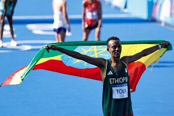 Tola, de 32 años, entró en el libro de historia del atletismo olímpico y mundial con una carrera sublime. Lo hizo en París, en un maratón duro por su perfil, con rampas de incluso el 13%, pero con un recorrido muy atractivo pasando por lugares emblemáticos de la capital francesa.