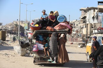 El Ejército israelí ha ordenado a última hora de este sábado la evacuación forzada de más partes de la ciudad de Jan Yunis, en el sur de la Franja de Gaza, tan solo tres días después de que anunciase lo propio para acabar con los milicianos del Movimiento de Resistencia Islámica (Hamás) presentes en la zona. La orden, publicada por el portavoz en árabe de las Fuerzas de Defensa de Israel (FDI), el coronel Avichay Adraee, afecta a los residentes del centro de la ciudad gazatí, en particular de los barrios Sheikh Nasser, Barbakh y Ma'an en los bloques 53, 54, 55, 103, 104, según ha dicho en la red social X. Como viene siendo habitual, Adraee ha justificado esta decisión porque desde estos lugares, "Hamás y las organizaciones terroristas continúan disparando cohetes hacia el Estado de Israel". Las FDI, ha asegurado, "actuarán enérgicamente contra estos elementos". Así, el Ejército ha ordenado a la población palestina que se dirija "inmediatamente" a la "zona humanitaria segura" que ha habilitado en la costa suroeste del enclave. Según datos de la Oficina de Coordinación de Asuntos Humanitarios de la ONU (OCHA), cerca de dos millones de palestinos, esto es, nueve de cada diez personas de la Franja de Gaza, ha sufrido el desplazamiento forzoso al menos una vez desde el inicio de la ofensiva militar israelí el 8 de octubre. Naciones Unidas y ONG internacionales recuerdan que estas maniobras de desplazamiento forzado son ilegales mientras que las autoridades de Gaza, bajo control de Hamás, así como asociaciones humanitarias, han acusado a Israel de atacar en varias ocasiones estas "zonas seguras". El Ejército israelí lanzó una ofensiva contra Gaza hace más de diez meses, a raíz de los ataques ejecutados el 7 de octubre por Hamás y otras facciones palestinas, que dejaron cerca de 1.200 muertos y unos 240 secuestrados. Las autoridades de Gaza han denunciado ya cerca de 39.800 muertos y 91.702 heridos.