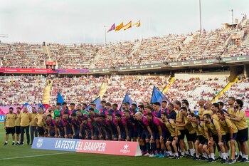 Por su parte, Hansi Flick también quiso tener unas palabras para los aficionados que se desplazaron a Montjuïc para darle la bienvenida al equipo: "Estoy muy contento de estar aquí y estamos trabajando duro para conseguir nuestros objetivos, con vosotros seremos más fuertes. ¡Visca el Barça!", comentó el teutón.