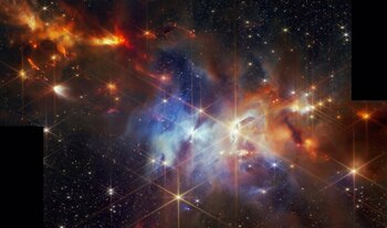 El telescopio espacial James Webb ha captado por primera vez el fenomeno de las erupciones protoestelares alineadas: chorros de gas de estrellas recién nacidas que se inclinan en la misma dirección. En esta imagen de la Nebulosa de Serpens, tomada el 20 de junio, los astrónomos encontraron una agrupación de erupciones protoestelares alineadas dentro de una pequeña región (la esquina superior izquierda). Serpens es una nebulosa de reflexión, lo que significa que es una nube de gas y polvo que no crea su propia luz, sino que brilla al reflejar la luz de las estrellas cercanas o dentro de la nebulosa. La imagen respalda la suposición de los astrónomos de que, a medida que las nubes colapsan para formar estrellas, las estrellas tenderán a girar en la misma dirección, informa la NASA. Anteriormente, los objetos aparecían como manchas o eran invisibles en longitudes de onda ópticas. La sensible visión infrarroja de Webb pudo atravesar el polvo espeso, lo que permitió distinguir las estrellas y sus erupciones.