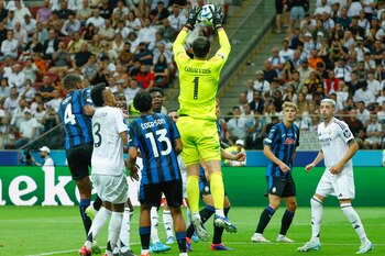 Courtois fue protagonista del triunfo del Real Madrid ante el Atalanta con una gran parada a mano cambiada cuando la final estaba empatada sin tantos. "La he podido salvar y luego ha cambiado un poco el partido y con la calidad arriba hemos decidido".