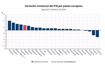 El producto interior bruto (PIB) de la zona euro y del conjunto de la Unión Europea creció un 0,3% en el segundo trimestre de 2024 respecto de los tres meses anteriores, manteniendo así en ambas regiones el ritmo de expansión observado en el primer trimestre, según la segunda lectura del dato publicada por Eurostat. En comparación con el mismo trimestre del año anterior, el PIB aumentó un 0,6% en la zona euro y un 0,8% en la UE en el segundo trimestre de 2024, después del aumento anual del 0,5% en la eurozona y el 0,6% en la UE en el trimestre anterior. En el segundo trimestre de 2024, el PIB de Estados Unidos aumentó un 0,7% en comparación con el trimestre anterior, tras la expansión del 0,4% en el primer trimestre, mientras que, en comparación con el mismo trimestre del año anterior, el PIB estadounidense aumentó un 3,1%. Entre los Estados de la UE para los que se dispone de datos del segundo trimestre, la mayor expansión del PIB correspondió a Polonia (1,5%), seguido de Irlanda (1,2%) y de Países Bajos (1%). Por contra, se observaron contracciones del PIB en Letonia (-1,1%), Suecia (-0,8%), Hungría (-0,2%) y Alemania (-0,1%). En el caso de España, el crecimiento del PIB en el segundo trimestre del año se mantuvo en el 0,8% trimestral, mientras que en comparación con el mismo periodo de 2023 la expansión fue del 2,9%.