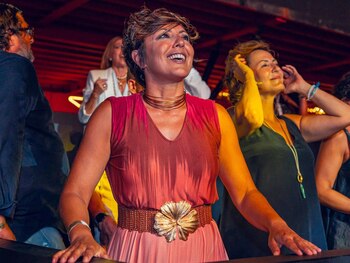 Contando los días para volver al trabajo. Así está Sonsoles Ónega, que en su batalla por el liderato de las tardes contra Ana Rosa Quintana regresa el próximo lunes 26 de agosto -al igual que la presentadora de 'TardeAR'- al frente de 'Y ahora Sonsoles' con una importante novedad. Y es que el magazine de las tardes de Antena 3 aumenta su duración y comenzará a las 17.00, justo después de la serie 'Sueños de libertad' y media hora antes que su rival. Por delante, cinco días de vacaciones que la periodista piensa exprimir al máximo. Tras recorrer el sur de España con dos de sus mejores amigas, Sonsoles está actualmente en Marbella y este martes no se ha perdido el concierto con el que la cantante Vanesa Martín ha puesto el broche de oro a su gira en el festival Starlite Occident. Radiante, la presentadora presumió de un bronceado envidiable con un estiloso vestido satinado de estampado degradado en tonos rojos y anaranjados, maxi cinturón con hebilla dorada en forma de flor, altísimas cuñas y joyas en dorado que destacaban su moreno. De lo más animada y sonriente, no dejó de bailar y aplaudir a la artista malagueña durante toda la velada, en la que sin duda se lo pasó de maravilla. Un concierto en el que también vimos a otros rostros conocidos como el diseñador Jorge Redondo, la periodista María Casado o la socialité Carmen Lomana, que una vez más destacó con su elegancia con un original vestido con estampado de langostas.
