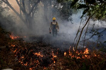 El estado de Sao Paulo ha declarado el estado de emergencia por los graves incendios que en los últimos tres días han provocado la destrucción de más de 20.000 hectáreas y ha dejado al menos dos muertos y unos 800 desplazados. Desde el pasado viernes se han registrado más de 2.300 incendios, la mayoría de ellos ya sofocados, siendo así el mes de agosto con mayor número de frentes abiertos en la historia del estado desde 1998. A la acción humana, ya hay dos sospechosos detenidos, se le suman unas condiciones meteorológicas propicias para que el fuego se extienda. "Tenemos la combinación de una sequía severa, baja humedad y los fuertes vientos hacen que estos incendios se propaguen", ha explicado el gobernador, Tarcisio de Freitas. "Tuvimos la acción de delincuentes", ha contado De Freitas, quien ha señalado que uno de los detenidos es un viejo conocido de las autoridades. Asimismo, ha reprendido a quienes continúan utilizando el fuego para acabar con los residuos y la basura. "Eso es inaceptable", ha dicho. Aunque los incendios han sido controlados, hay cerca de medio centenar de ciudades en alerta máxima. Algunos focos continúan activos, algunos de ellos en Ribeirao Preto, donde las ráfagas de viento de hasta 80 kilómetros por hora propagaron el fuego asolando casas en cuestión de minutos, informa el portal G1. La ministra de Medio Ambiente, Marina Silva, ha señalado que estos incendios son "atípicos" por lo que ha defendido la necesidad de iniciar una investigación. "En Sao Paulo no es natural, bajo ninguna circunstancia, que en pocos días haya tantos frentes que afecten simultáneamente a varios municipios", ha dicho. Silva ha hablado de otro 'día del fuego', en referencia a los graves incendios provocados en Pará en 2019. Ha mencionado que además de las investigaciones para determinar las causas de lo que está ocurriendo en Sao Paulo, las autoridades han abierto diligencias también en las regiones del Pantanal y la Amazonía.