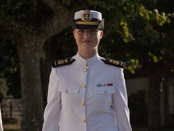 La Princesa Leonor ha ingresado en la Escuela Naval Militar de Marín, en Pontevedra, donde continuará con su formación castrense -como ya hizo Felipe VI en 1986- en tercer curso como guardiamarina de primero. La Princesa de Asturias estará hasta diciembre en Marín y posteriormente se embarcará en el buque-escuela Juan Sebastián Elcano. La hija de los reyes, Don Felipe VI y Doña Letizia, se ha dejado ver luciendo por primera vez el uniforme de la Armada -de color blanco y con chaqueta abotonada- y lo ha hecho en solitario. El curso, como es habitual, se divide en dos partes: una que es más académica en la Escuela Naval y otra en el buque-escuela Juan Sebastián Elcano, donde embarcará en enero. Hasta ese momento, Leonor realizará diferentes maniobras y actividades, una de ellas, enmarcada en el calendario como todos los años, será a mediados de noviembre en Parga (Lugo), donde aprenderá a usar ametralladoras y granadas. ¿CÓMO SERÁ SU DÍA A DÍA? Con todo, su día a día se corresponderá al "régimen estricto y de internado" en el que ingresará y, por ello, en palabras de Pedro Cardona, su horario será "un no parar". Todos los días a las 06:45 horas se levanta el batallón, los alumnos se preparan, desayunan, arreglan sus habitaciones y a las 07:50 horas toca pasar 'revista de policía' -verifican que lleven el uniforme bien puesto-. A continuación, irán a clase: cinco horas por la mañana --comienzan a las 08:10 horas-- y tres por la tarde. Disponen de una hora para comer y todos los días deben de realizar una hora de gimnasia. A las 18.00 horas tiene lugar un acto militar, la 'lectura de la orden', y a las 22:30 horas tienen que irse a dormir, para "garantizar que los alumnos tienen ocho horas de sueño". Si algún alumno quiere acostarse más tarde para estudiar debe pedir permiso. Los fines de semana son "más laxos". Se levantan a las 08:45 horas, la mañana del sábado es lectiva y a partir de las 12:30 horas pueden salir a la calle. En función de su antigüedad y del curso en el que estén encuadrados podrán regresar a la Escuela a las 01.30 horas, los alumnos de primero, o a las 03.00 horas. Con todo, a partir del tercer curso los estudiantes tienen la posibilidad de dormir fuera. "Esta es una forma de facilitar el régimen que llevan, que es de internado, para ayudar a cohesionar el grupo de personas que ingresan en la Escuela", ha apuntado Cardona.