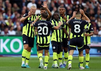 El Manchester City ha derrotado por 1-3 al West Ham United, triplete incluido del delantero noruego Erling Haaland, en un partido de la jornada 3 en la Premier League inglesa, la cual también ha visto este sábado el empate (1-1) entre Arsenal FC y Brighton & Hove Albion y la victoria por 1-2 del Aston Villa en su visita al Leicester City. En el Estadio Olímpico de Londres, los pupilos de Pep Guardiola se adelantaron en el 10' tras el error en un pase hacia Lucas Paquetá. Robó entonces Bernardo Silva, que filtró el balón a Haaland para que éste batiera con un zurdazo raso al guardameta local, Alphonse Areola. Empató momentáneamente el West Ham en el 19', por un autogol del central portugués Rúben Dias al desviar un centro de Jarrod Bowen desde la banda derecha, justo después de que Kevin De Bruyne se hubiera topado con el poste en un fuerte derechazo edntro del área. Sin embargo, otra vez Haaland solventó los problemas del Manchester City con el 1-2 (30'). Tras recibir un pase raso de Rico Lewis en el área 'hammer', el '9' del equipo 'sky blue' ejecutó un zurdazo seco y potente que entró como un obús en la portería de Areola. La sentencia de los visitantes llegó en el minuto 83, cuando el 'hat-trick' de Haaland cristalizó al marcar una leve vaselina con la zurda tras un pase de Matheus Nunes al hueco. Esta victoria situó a los de Guardiola con nueve puntos de nueve posibles, en lo más alto de la tabla clasificatoria. A su rebufo están con siete puntos tanto el Brighton como el Arsenal, habiendo empatado entre ellos sobre el césped del Emirates Stadium. Kai Havertz abrió el marcador en el 38', salvando con maestría la salida del portero rival. Pero los 'gunners' sufrieron la expulsión de Declan Rice por doble tarjeta amarilla al inicio dela segunda mitad, lo que acabaron acusando al encajar el definitivo 1-1 de João Pedro en el minuto 58. Pese a una gran parada del español David Raya, el atacante del Brighton aprovechó en segunda instancia para empujar su remate al fondo de las mallas. Por otra parte, el Brentford ganó por 3-1 al Southampton, el Everton perdió por 2-3 ante el Bournemouth y se vivieron empates en el duelo Ipswich Town vs Fulham (1-1) y en el encuentro Nottingham Forest vs Wolverhampton Wanderers (1-1). --RESULTADOS Y PROGRAMA DE LA JORNADA 3. -Sábado. Arsenal - Brighton 1-1. Brentford - Southampton 3-1. Everton - Bournemouth 2-3. Ipswich - Fulham 1-1. Leicester - Aston Villa 1-2. Nottingham Forest - Wolverhampton Wanderers 1-1. West Ham - Manchester City 1-3. -Domingo 1 de septiembre. Chelsea - Crystal Palace. Newcastle - Tottenham. Manchester United - Liverpool.